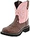 Justin Boots Women's Gypsy-L9935 Boot,Brown/Pink,8 B US Overviews Ladies pull on roper by Justin. Pink suede top, chocolate brown ostrich foot with a saddle vamp. There is a fashion rounded toe with a single stitched welt featuring a deep scallop. This roper has a cushion insole and a black rubber outsole. |